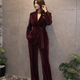 Burgundy Velvet Belted Blazer Co-Ord Set