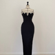- Elegant full-length tube gown in classic black